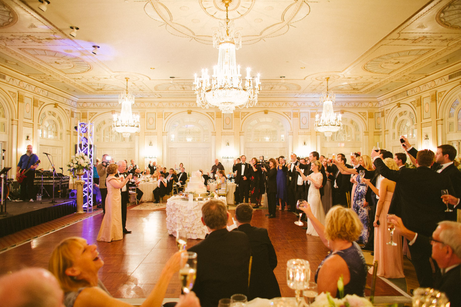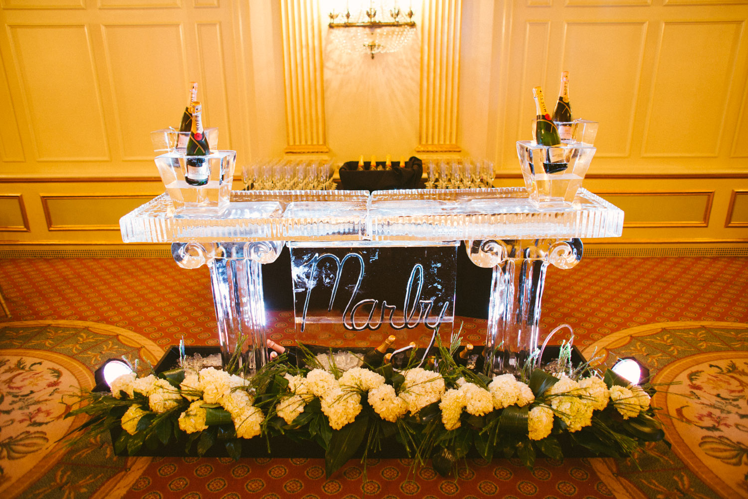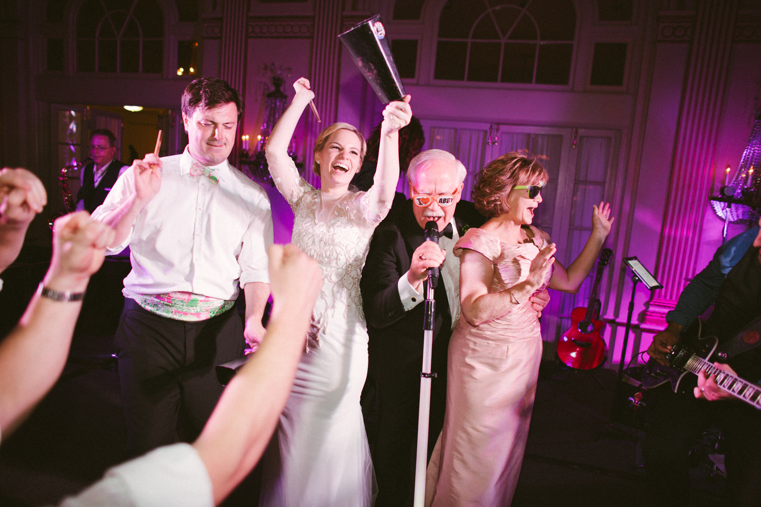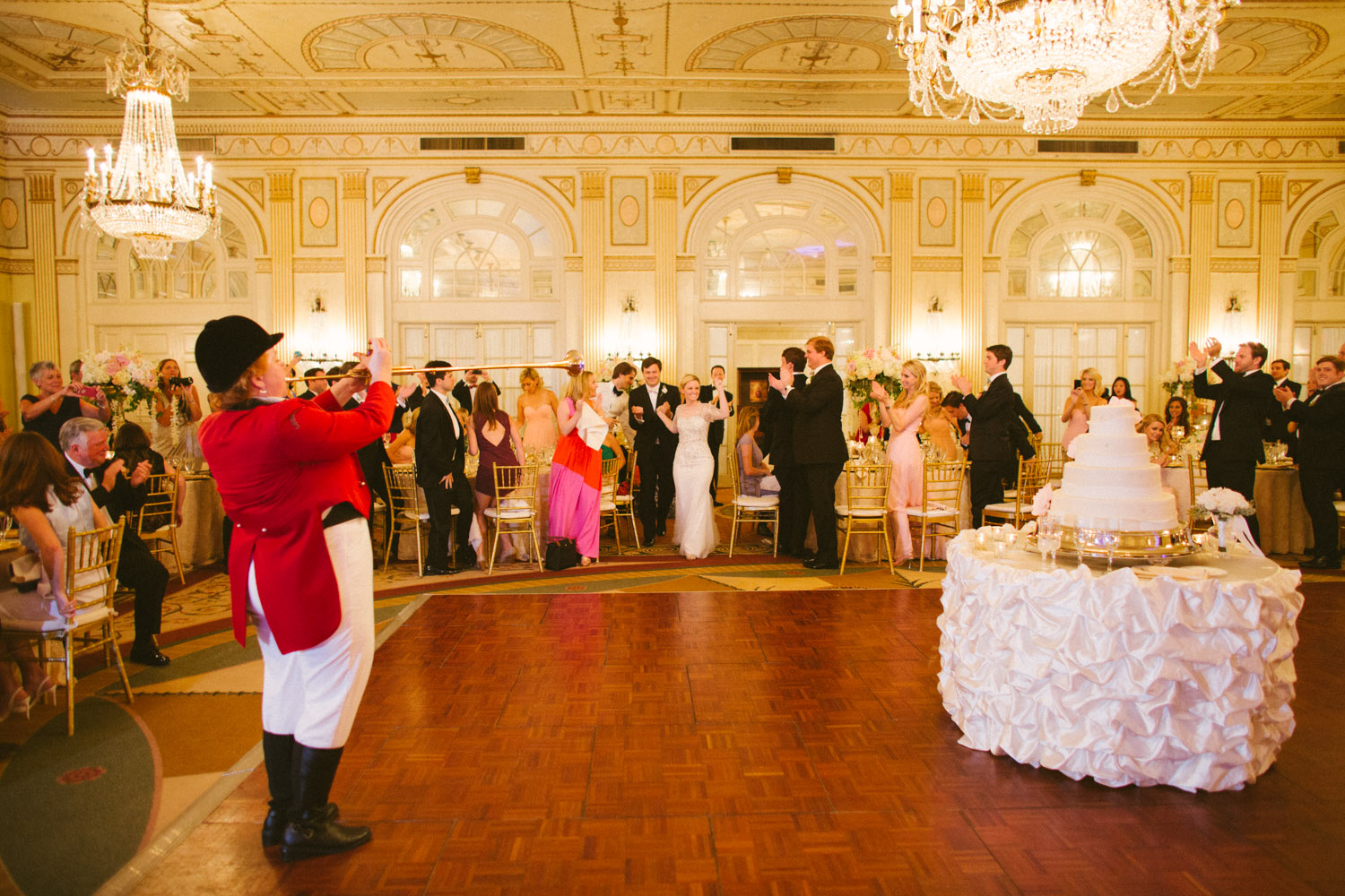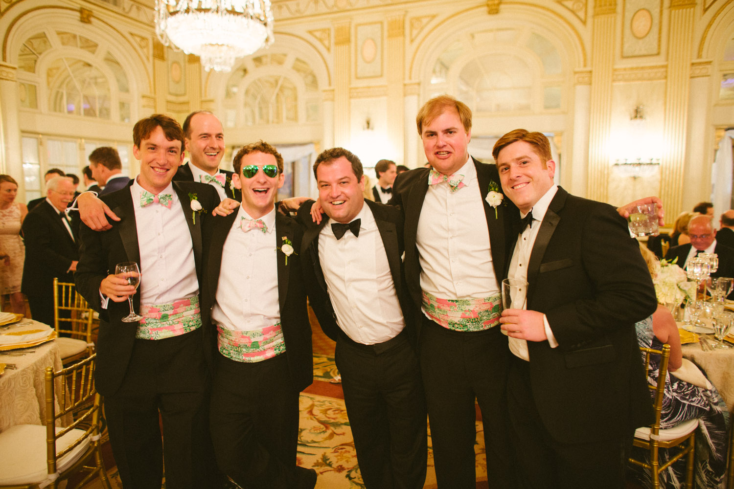 February 10, 2016 Though Abigail & Marc met in the Hampton's and lived in NYC at the time, the couple decided to get married near Abigail's hometown (S. Indiana). They wanted to give their guest a little taste of Southern Hospitality. Let me tell you- they knocked it out of the park! The ceremony was held just blocks away from the Hotel at Christ Church Cathedral and the guests were shuttled there & back. Check out the stunning escort card table display. And did we mention that all the paper goods (invitations, menus, & escort cards) were hand water colored!?! During cocktail hour guests enjoyed tunes from Commonwealth Musicians & noshed on Prosciutto Wrapped Melon Skewers & classic Mini Hot Browns. The Belmount Stakes ran that afternoon just in time for all the guests (& the Bridal party) to enjoy at the end of cocktail hour. Even though California Chrome didn't win the Triple Crown that day, the race certainly added another level of entertainment for all! In complete Kentucky fashion Abigail & Marc's grand entrance included a bugler! The gorgeous florals are from In Bloom Again. Videography by Kay Rountree Videography. The first course for dinner was a Bibb & Arugula salad with Crispy Red Onions, Cashews, & a Truffle Grapefruit Vinaigrette. The dual entrée consisted of a Horseradish & Parsley Crusted Filet & Shrimp served atop Citrus Risotto with a Tomato Béarnaise. Drinks were flowing all night at two standard bars plus this Champagne ice bar with the bride's favorite- Moet & Chandon Imperial & Rose Imperial. The couple's nickname was carved into the ice & filled with black sand so it could be read by the guests. The groom's favorite drink was available at the main bars all night also- a Dark & Stormy! This elegant cake was provided by Mert's Cakes and accented with beautiful open peonies! Loving the Lily Pullitzer bow ties & cummer bunds for the groomsmen! The Louisville Crashers kept the dance floor totally packed all night. These photos really tell it all! When guests needed a breather from the dance party they enjoyed some late night pizza and wings, grabbed a frozen towel to cool off & some personalized sunglasses (just for fun) before rejoining the party. Needless to say this group had a great night and made some amazing memories!! To Weddings that still make us cry, Debbie & Your Brown Hotel Wedding TeamA Brown Wedding: Abigail & Marc